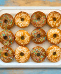 Farina di frumento tipo 00, Zucchero, uova fresche pastorizzate, Latte, Olio extra vergine di oliva, zucchero in granella, Codette arcobaleno (Zucchero, amido modificato (mais), olio di cocco, sciroppo di glucosio, concentrati vegetali: cartamo, limone, ravanello, patata dolce; agente antiagglomerante: talco; colorante: blu brillante FCF. Può contenere GRANO.) (1,5 %), lievito (difosfato disodico (E450 i), carbonato acido di sodio (E500ii), amido di mais), aroma di limone (Aromi naturali), aroma vaniglia per dolci e creme (0,9 %)