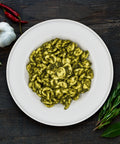 Orecchiette alle cime di rapa leggermente piccanti, pronte da riscaldare in 10 minuti al microonde. Confezione gastronomia da 1 Kg.